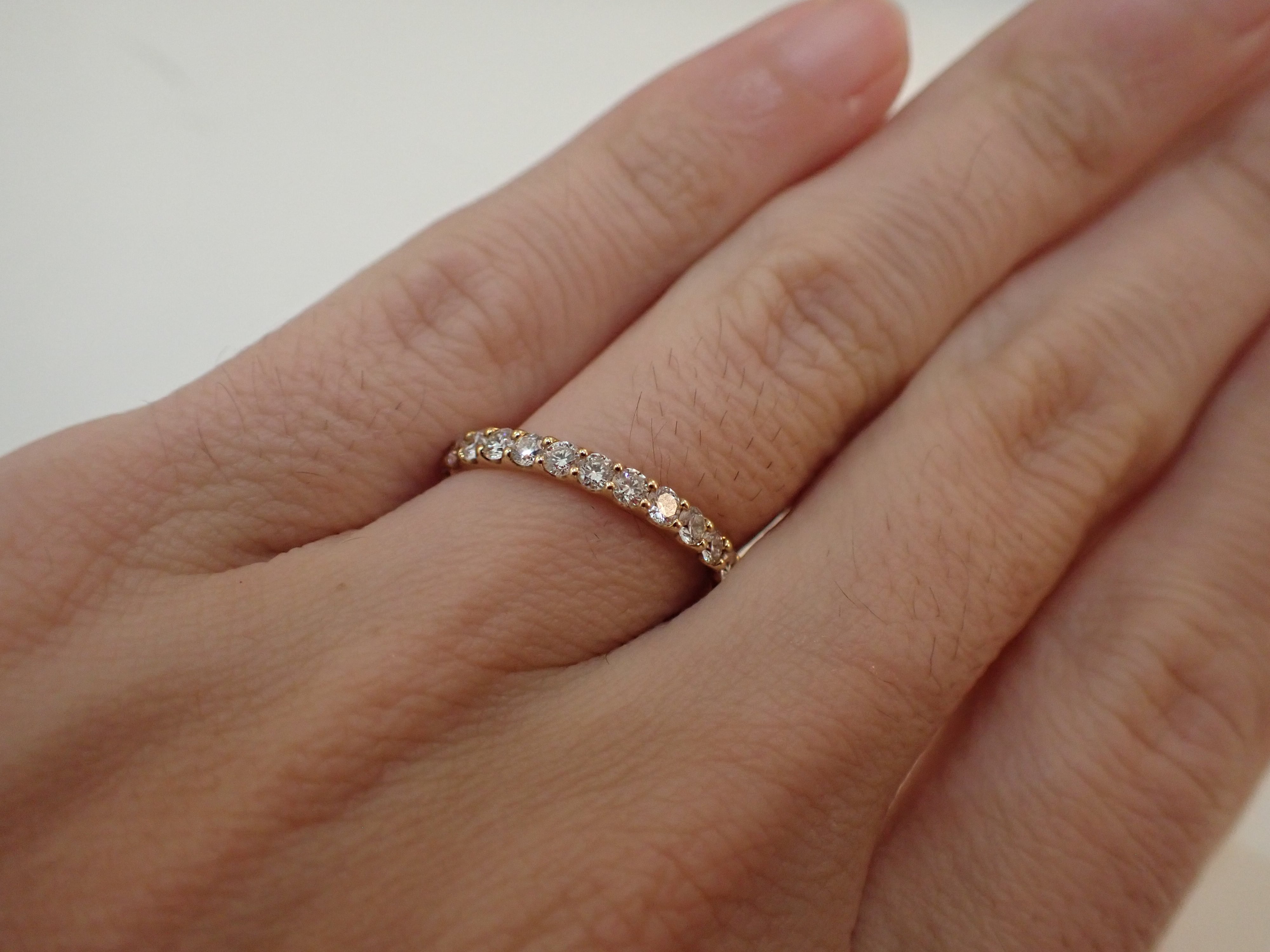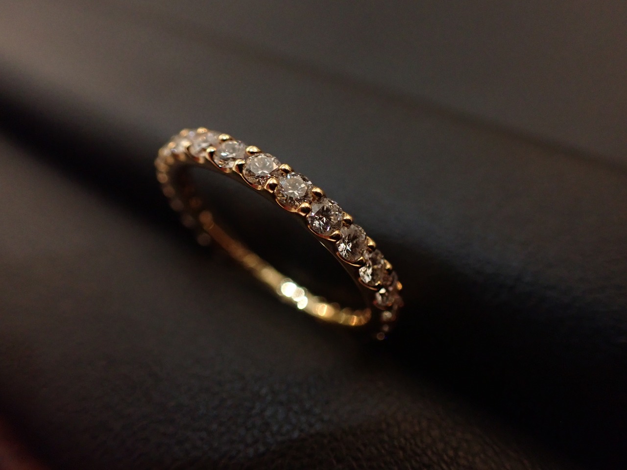 こちらのエタニティリングはどの面にもダイヤモンドが留まっているので、